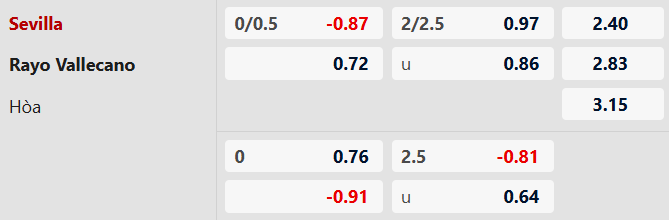 Thông tin tỷ lệ kèo Sevilla vs Vallecano: