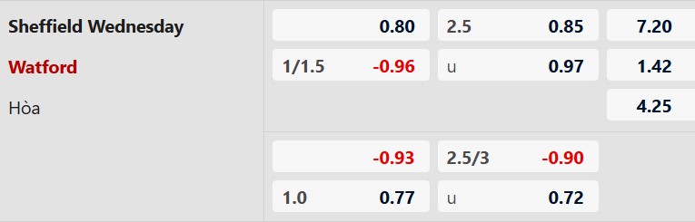 Soi kèo châu Á Sheffield Wednesday vs Watford: