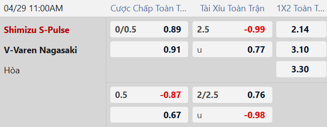 Thông tin tỷ lệ Shimizu vs V-Varen Nagasaki: