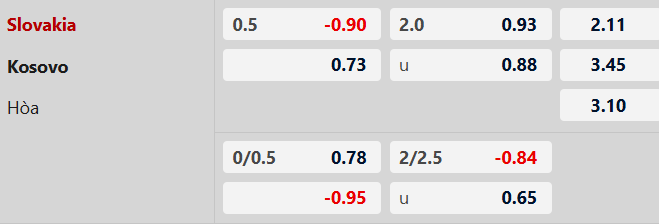 Mức chấp 1/2 cho thấy Slovakia được đánh giá nhỉnh hơn nhờ lợi thế sân nhà. Tuy nhiên, Kosovo đang có phong độ rất ổn định và tinh thần thi đấu cao sau chiến dịch vòng loại thành công. Slovakia có thể kiểm soát thế trận, nhưng trước lối chơi khó chịu và khả năng phản công tốt của Kosovo, đây sẽ là trận đấu không dễ dàng.