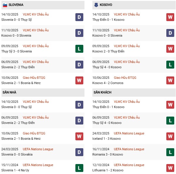 - Slovenia thắng 2, hòa 1 trong 3 trận gặp Kosovo gần đây.