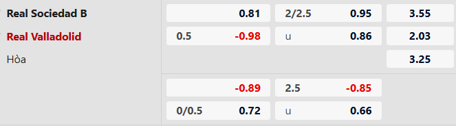 Soi kèo tài xỉu Sociedad B vs Valladolid: