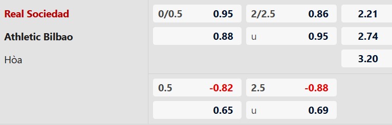 Thông tin kèo bóng đá Sociedad vs Bilbao: