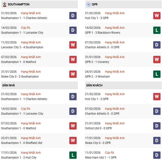 Với thành tích ấn tượng như vậy cộng thêm lợi thế sân nhà, nhiều khả năng Southampton sẽ đánh bại được QPR, đội đã toàn thua họ trong 5 cuộc đụng độ gần nhất giữa 2 bên.