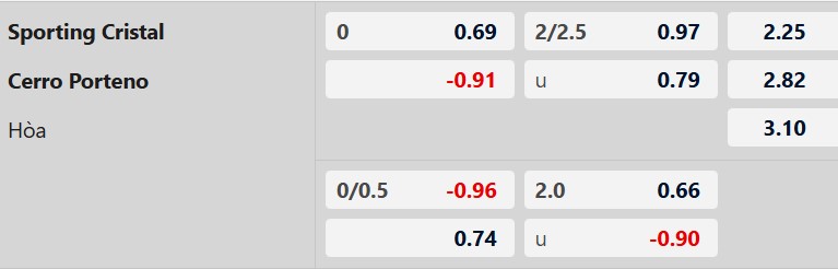 Thông tin tỷ lệ cược Sporting Cristal vs Cerro Porteno: