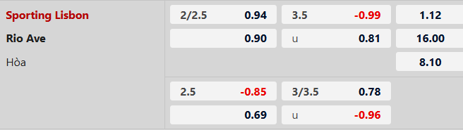 Soi kèo châu Á Sporting Lisbon vs Rio Ave: