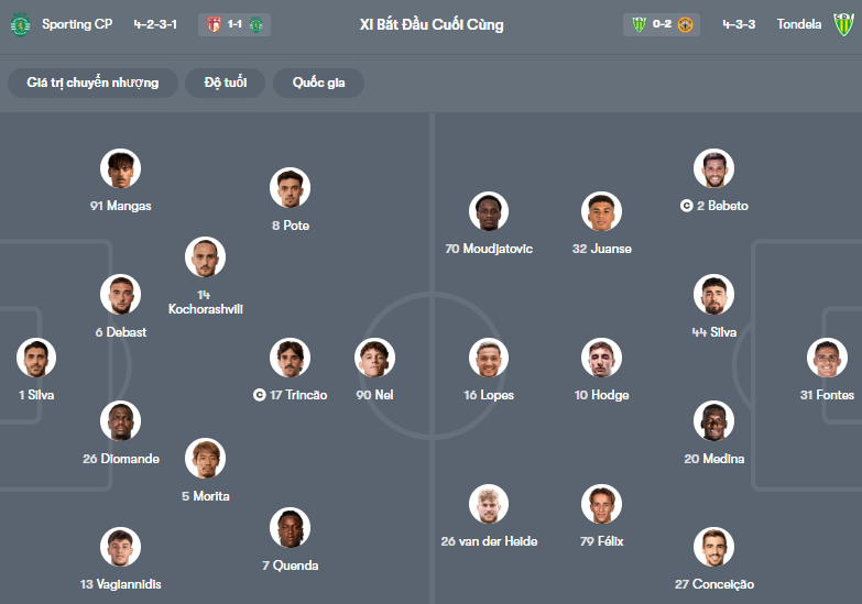 Thống kê phong độ Sporting Lisbon vs Tondela: