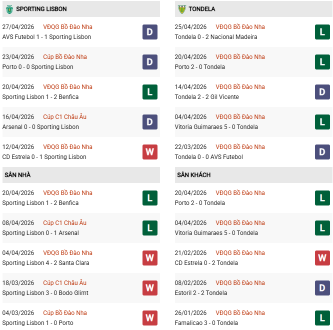 Phong độ của Tondela đang ở mức báo động đỏ khi họ đã thua 3 trong 5 vòng đấu gần nhất và không thắng trong suốt giai đoạn này. Việc phải làm khách tại thủ đô trước một Sporting đang khát điểm là nhiệm vụ dường như bất khả thi đối với đội bóng đang đứng áp chót BXH.