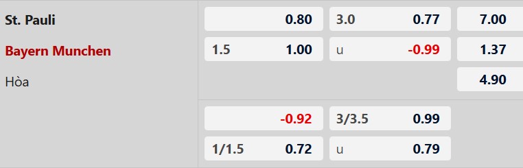 Soi kèo châu Á St.Pauli vs Bayern Munich: