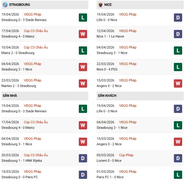 - Trên sân nhà, Strasbourg thắng 4, thua 3 trước Nice.