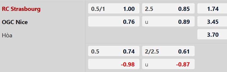 Thông tin tỷ lệ bóng đá Strasbourg vs Nice: