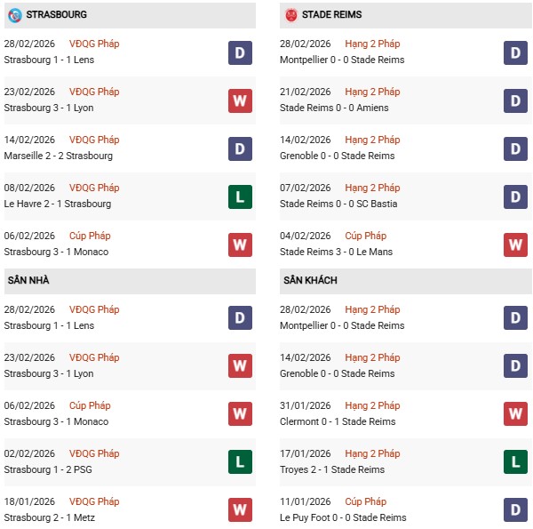 - Trên sân nhà, Strasbourg thắng 4, thua 2 trước Reims.