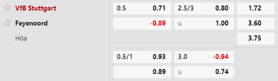 Thông tin tỷ lệ kèo Stuttgart vs Feyenoord: