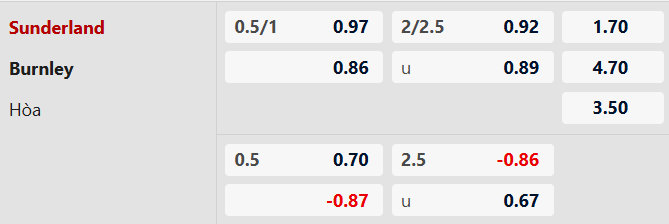 Thông tin tỷ lệ bóng đá Sunderland vs Burnley: