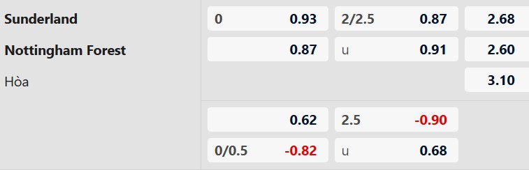 Mức kèo hòa được thua cho thấy sự cân bằng tuyệt đối giữa ý chí vươn lên của chủ nhà và phong độ ổn định của đội khách. Sunderland có lợi thế sân nhà, nơi họ từng khuất phục nhiều đối thủ lớn, nhưng Nottingham lúc này không phải là cái tên dễ bị đánh bại. Đội khách đã thắng kèo châu Á ở 4/5 vòng đấu gần nhất. Trong bối cảnh cả hai đều đang có điểm rơi phong độ tốt và tâm lý hưng phấn, một kết quả hòa là kịch bản rất dễ xảy ra.