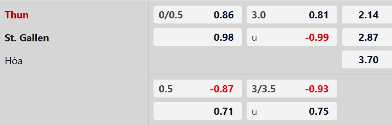 Thông tin tỷ lệ kèo Thun vs St.Gallen: