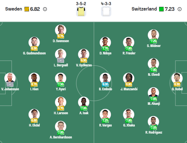 Đội hình dự kiến Thụy Điển vs Thụy Sĩ: