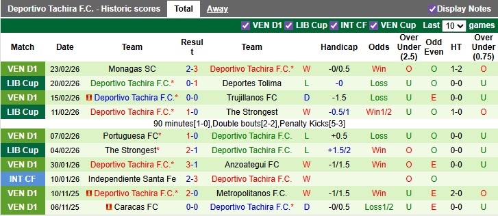 6 trận mới nhất của Tolima thì có tới 5 lần hiệp 1 khép lại với tỉ số hòa 0-0. 7 trận sân nhà gần đây của CLB này cũng chỉ chứng kiến đúng 2 pha lập công trước giờ nghỉ giải lao. Phía bên kia sân, 5/7 trận vừa qua của Deportivo Tachira cũng cho kết quả không-bàn-thắng sau 45 phút đầu. Đừng chờ lưới rung sớm ở nửa đầu trận đấu này!