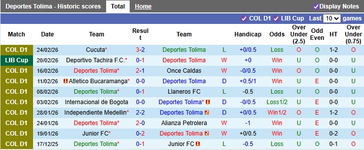 Thống kê phong độ Tolima vs Deportivo Tachira: