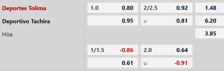 Thông tin tỷ lệ cược Tolima vs Deportivo Tachira: