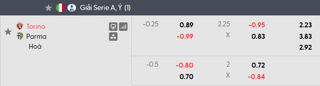 Thông tin tỷ lệ bóng đá Torino vs Parma: