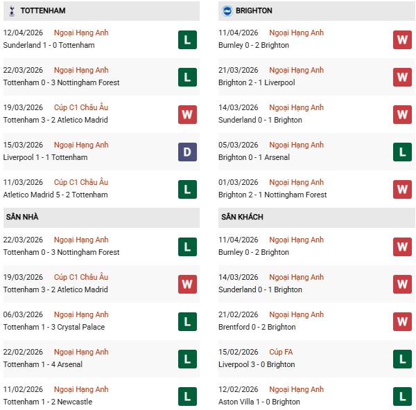 - Trên sân nhà, Tottenham thắng 8, thua 2 trước Brighton.