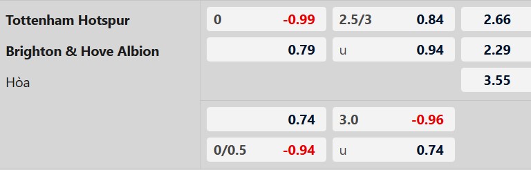 Thông tin tỷ lệ kèo bóng đá Tottenham vs Brighton: