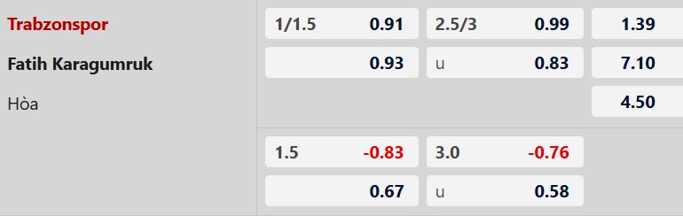 Thông tin tỷ lệ kèo Trabzonspor vs Karagumruk: