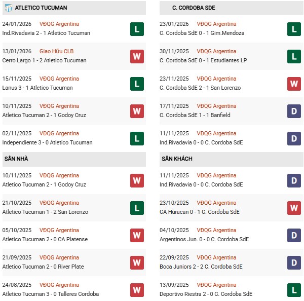 - Trên sân nhà, Tucuman thắng 2, thua 2 trước Central Cordoba.