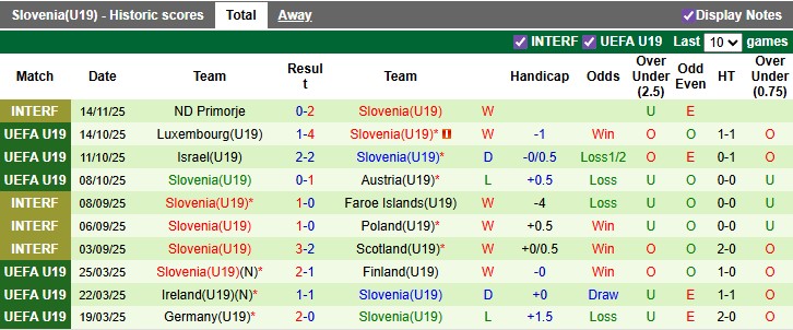 Lẻ bàn thắng: 4/6 trận gần đây của Tây Ban Nha tại giải U19 kết thúc lẻ bàn thắng. Tình trạng tương tự xảy ra ở 6/8 trận vừa qua của Slovenia trên mọi đấu trường.