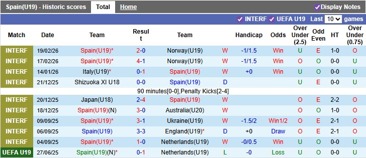 Thống kê phong độ U19 Tây Ban Nha vs U19 Slovenia: