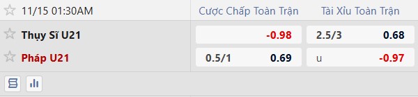 Tới đây, U21 Thụy Sĩ dù được chơi trên sân nhà nhưng phải đón tiếp U21 Pháp được đánh giá cao hơn hẳn (-3/4 hoặc -1) mà thành tích tiếp khách của đại diện xứ đồng hồ thời gian gần đây không tốt: 5 trận liền không đem về niềm vui cho giới mộ điệu dù chỉ thua 1 về chuyên môn (bởi toàn được nhìn nhận vượt trội đội khách, thấp nhất cũng phải -3/4).