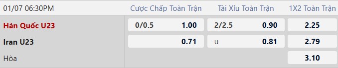 Thông tin tỷ lệ kèo U23 Hàn Quốc vs U23 Iran:
