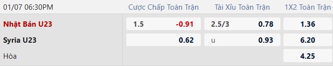 Thông tin tỷ lệ cược U23 Nhật Bản vs U23 Syria: