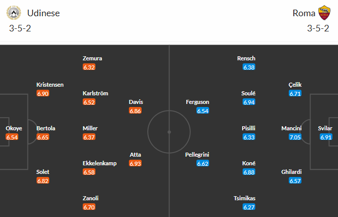 Roma với chiến tích thu về tới 10 điểm từ 4 vòng gần nhất rõ ràng đang có phong độ tốt. Chỉ phải gặp Udinese đang chật vật trong việc tìm kiếm chiến thắng, khả năng cao là các vị khách sẽ được ca khúc khải hoàn.