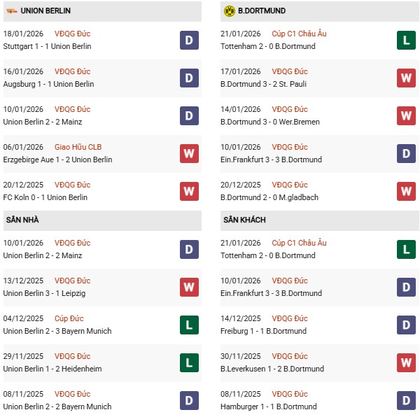 Vào lúc này, phong độ của Union Berlin đang rất ổn với mạch 6 trận liền không thua. Còn Dortmund cũng chẳng kém cạnh khi chỉ thua 1/7 trận vừa xong. Trên sân nhà, Union Berlin lại đang khiến các fan thất vọng khi chỉ thắng 1/7 trận mới nhất, tính trong 90 phút.