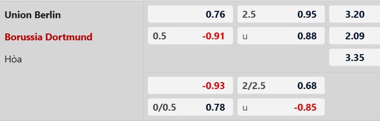 Thông tin tỷ lệ bóng đá Union Berlin vs Dortmund: