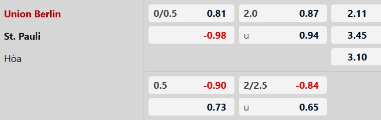 Thông tin tỷ lệ kèo Union Berlin vs St.Pauli: