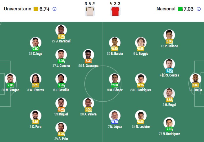 Đội hình dự kiến Universitario vs Nacional: