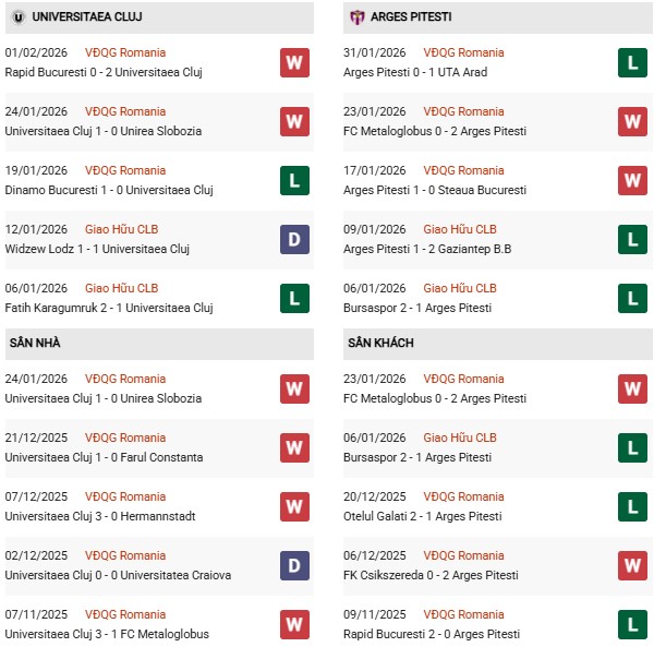 Tuy nhiên, nếu xét riêng trên sân nhà, họ chưa tạo được ưu thế quá rõ rệt khi chỉ thắng 4, hòa 3 và thua 3 trong 10 lần tiếp khách gần đây. Tiếp đón đối thủ cạnh tranh trực tiếp như Arges, Universitatea Cluj nhiều khả năng sẽ nhập cuộc thận trọng, ưu tiên sự chắc chắn nhằm bảo toàn vị trí trong top đầu.