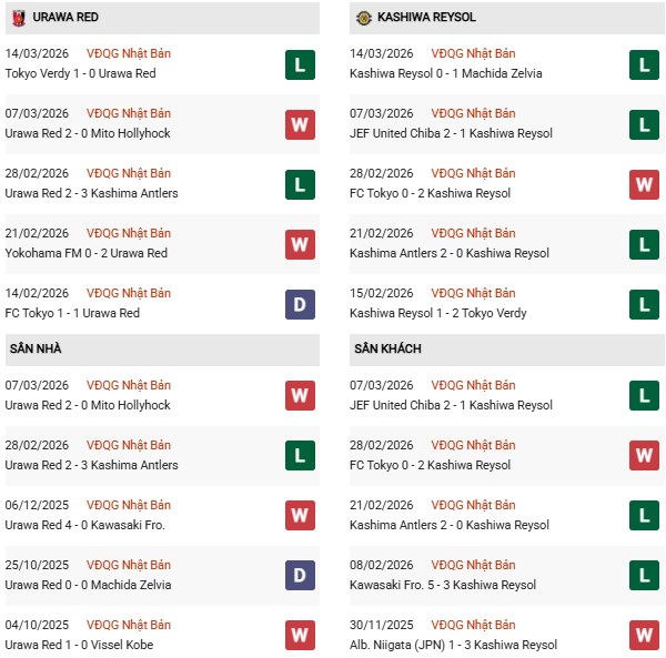Thống kê phong độ Urawa Reds vs Kashiwa Reysol:
