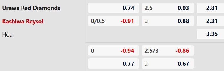 Thông tin tỷ lệ cược Urawa Reds vs Kashiwa Reysol: