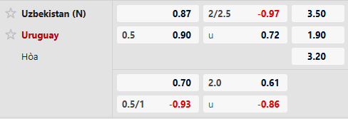 Soi kèo tài xỉu Uzbekistan vs Uruguay: