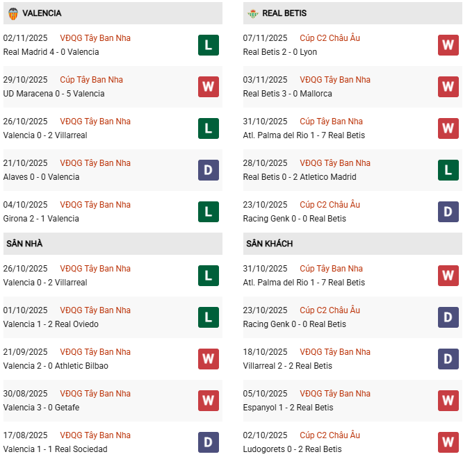 Valencia dù có lợi thế sân nhà nhưng phong độ hiện tại không cho phép họ tự tin trước một Real Betis đang chơi ngày càng ổn định và hiệu quả. Một chiến thắng sít sao nhưng đủ để Betis nối dài chuỗi trận bất bại và tiếp tục cuộc đua ở nửa trên bảng xếp hạng.