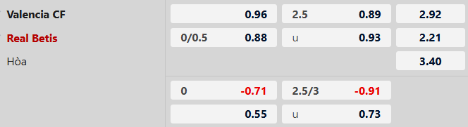 Thông tin tỷ lệ kèo Valencia đấu với Real Betis: