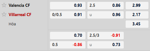 Thông tin kèo bóng đá Valencia vs Villarreal:
