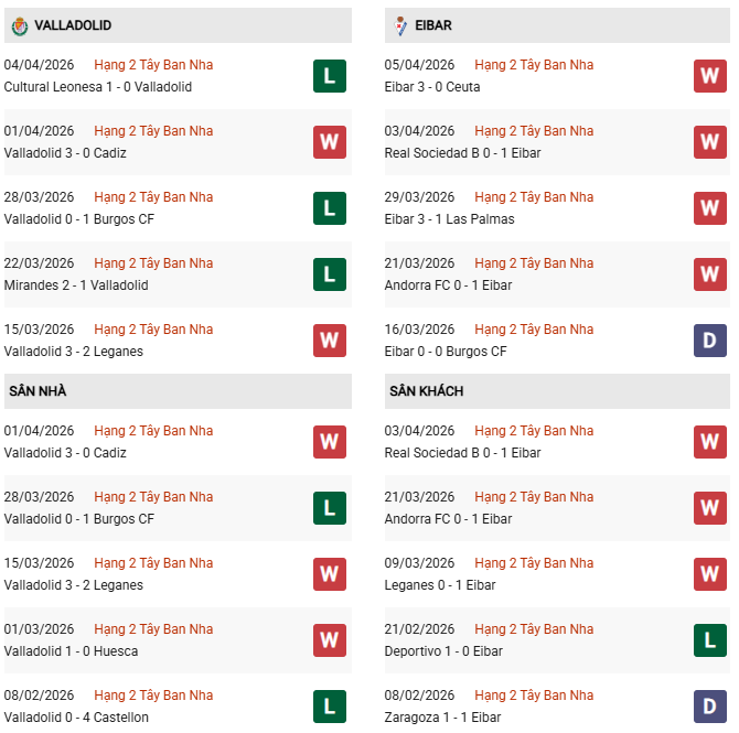- Eibar thắng 4 thua 5 và hòa 1 trong 10 lần gần nhất gặp Valladolid.