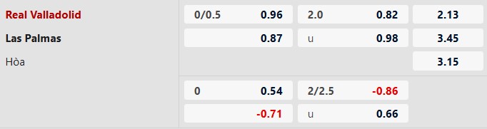 Thông tin tỷ lệ kèo Valladolid vs Las Palmas: