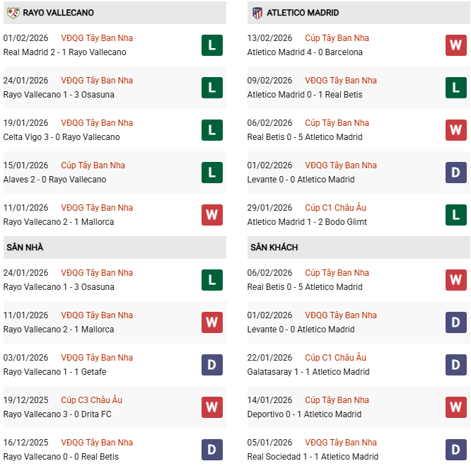 - Trên sân nhà, Vallecano thắng 1, thua 6 trước Atletico Madrid.