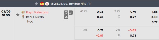 Thông tin tỷ lệ bóng đá Vallecano vs Oviedo: